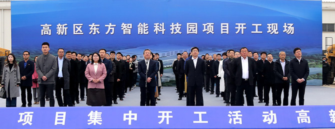 3月13日上午,烟台市举办2021年全市114个重大项目集中开工仪式,拉开了烟台万亿投资的序幕。活动采用视频连线的形式,分为1个主会场,12个分会场。其中高新区分会场设在公司博雅睿道科技(北京)有限公司智能科技园现场,这标志着东方智能科技园区正式开工建设。